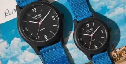 Новые аналоговые часы Fossil Solar с корпусом из биопластика и ремешком из переработанных пластиковых бутылок.