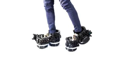 В обуви используется конструкция из углеродного волокна — она легкая, а для отслеживания движения в VR используются шайбы Vive Tracker от HTC. На нижней части устройства расположены две вращающиеся пластины, которые могут поворачиваться в направлении, в котором идет пользователь. Как только он ставит ногу на землю, набор колес тянет ее назад, давая ощущение ходьбы. При этом в обуви есть своя система торможения, которая работает, когда человек стоит на месте.