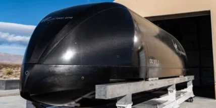 Высокопоставленные сотрудники компании Virgin Hyperloop "прокатились" по вакуумному тоннелю длиной в 500 метров в футуристической капсуле.