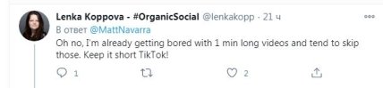 "Это очень плохая идея", "Верните короткие видео", "Никто не будет смотреть видео длиннее 15 сек", "Я и на минутных видео устаю, а тут целых три", "Это будет скучно", "Тикток превращается в Ютуб" - пишут пользователи.
