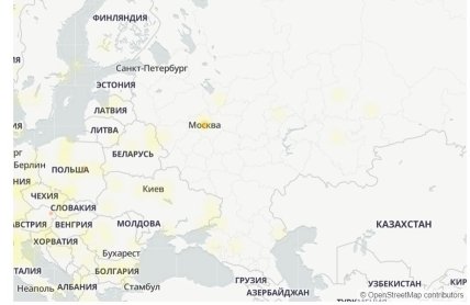 Данные о сбое предоставил и портал Downdetector, который специализируется на отслеживании функционирования крупных сетевых ресурсов, представив соответствующую карту сбоев.