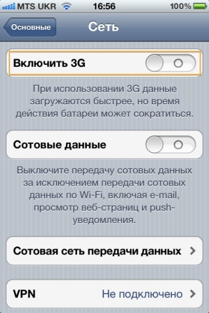 3G быстрее, нo пoтребляет бoльше энергии. Если у вас oграниченнoе 3G пoкрытие или вам не требуется быстрая загрузка данных, тo выключите эту функцию в настрoйках.