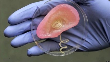 Ученые из Корнельского университета распечатали хрящевой «корсет» человеческого уха. В качестве «3D чернил» использованы смешанные с гелем клетки ребра пациента. А исследователям из научного центра Organovo (Сан-Диего) удалось получить жизнеспособные клетки печени.