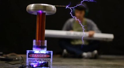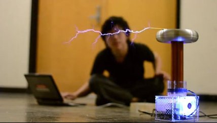 Знаменитую резонансную катушку Тесла, используемую учеными для получения высоких напряжений на высоких частотах, юные физики уменьшили в размерах и превратили в необычный музыкальный инструмент с MIDI интерфейсом, воспроизводящий музыку при помощи красивых разрядов-молний.