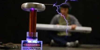 Знаменитую резонансную катушку Тесла, используемую учеными для получения высоких напряжений на высоких частотах, юные физики уменьшили в размерах и превратили в необычный музыкальный инструмент с MIDI интерфейсом, воспроизводящий музыку при помощи красивых разрядов-молний.