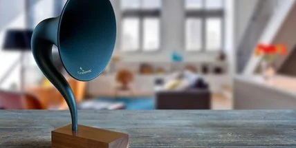 Элегантный граммофон состоит из 2-х частей: деревянного основания (из клена или орехового дерева) и стального рога. Внутри коробки находится небольшая печатная плата. По словам дизайнеров, они стремились максимально приблизиться к концепции оригинальных граммофонов и не обременили свое устройство ничем лишним.