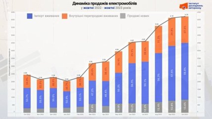 Большинство из них (58,9% или 3 626 шт.) привезли подержанными из-за границы. Новых украинцы купили 13,6% (838 шт.). По состоянию на ноябрь, парк электроавтомобилей в Украине составляет 76 916 штук: 74 766 легковых, 2 145 грузовых, и 5 автобусов.