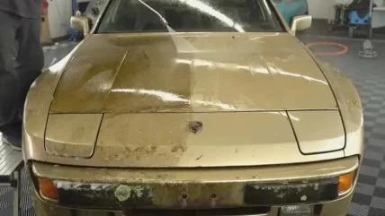 Этот представитель легендарной модели Porsche 944 простоял под открытым небом, на поле, пятнадцать лет. Автомобиль уже хотели отправить на свалку, но сотрудники WD Detailing решили дать ему второй шанс.