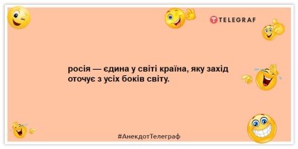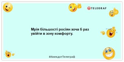 Навіть війна в Україні, яка триває вже 34-й день, не змушує українців сумувати та "розклеюватися". Український народ "воює" з окупантами не лише зброєю, а й гумором. Раніше ми вже ділилися з вами добіркою жартів про санкції в Росії, а сьогодні зібрали вибірку анекдотів про росії і росіян.