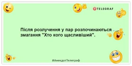Смішні анекдоти про стосунки між колишніми на кілька хвилин повернуть нас у мирний час. Читайте та посміхайтеся!