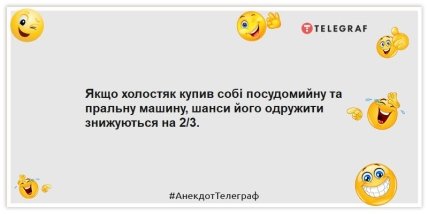 "Телеграф" вирішив підняти настрій усім своїм читачам із самого ранку, щоб позитив супроводжував вас цілий день. Читайте смішні анекдоти та жарти про неодружених чоловіків та підіймайте собі настрій.