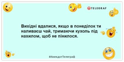Щоб ваш настрій і надалі залишався веселим та позитивним, "Телеграф" склав для читачів добірку анекдотів про вихідні.
