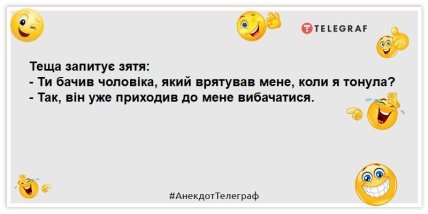 "Телеграф" пропонує вам посміхнутися вічним анекдотам про зятя і тещу. Ми сподіваємося, що ці жарти відволічуть вас трохи від новин та подарують заряд гарного настрою на весь день!
