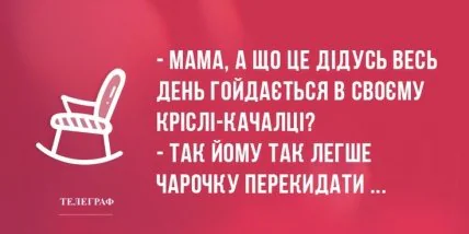 Сьогодні "Телеграф" пропонує вам посміятися з анекдотів про, можна сказати, найадекватнішого родича — дідуся. Маючи за спиною багато прожитих років, цей чоловік може поділитися мудрою порадою з онуками та розсмішити кумедним спогадом із молодості. Звичайно, з дідусями найчастіше відбуваються пригоди, які змушують сміятися до сліз. Ми сподіваємося, що ці жарти відволічуть вас трохи від новин про війну та подарують заряд гарного настрою на весь день!