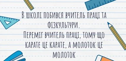 Український народ є надзвичайно стійким у важких та напружених обставинах, і навіть такі ситуації не можуть зламати їх дух. Українці використовують гумор та жарти, щоб підбадьорювати як себе, так і інших. Хоча анекдоти про війну з росією можуть допомогти подарувати трохи позитиву, але жарти про вчителів та школу також завжди залишатимуться актуальними.