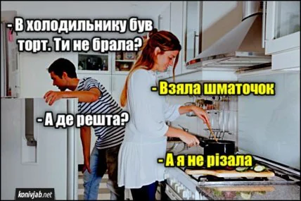 — Ой, їж бодай весь, тільки половину залиш гостям.