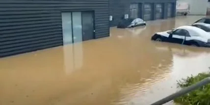 В одному з німецьких міст аномальні зливи затопили автосалон з елітними авто. Багато машин повинні були відправитися до своїх покупців, але на жаль вони все через стихію були пошкоджені.