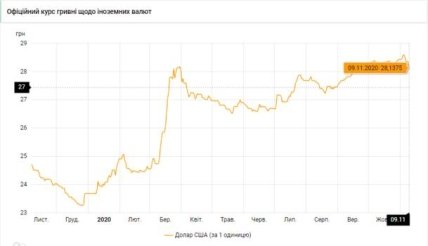 Курс гривні на 9 листопада встановлено на рівні 28,13грн. / Дол.