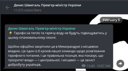 Згідно зі словами прем’єр-міністра України Дениса Шмигаля, протягом чинного опалювального сезону тарифи на опалення та гарячу воду підвищувати не будуть. Ще 9 лютого він казав, що з місцевою владою уряд офіційно підписав меморандум з цього приводу.