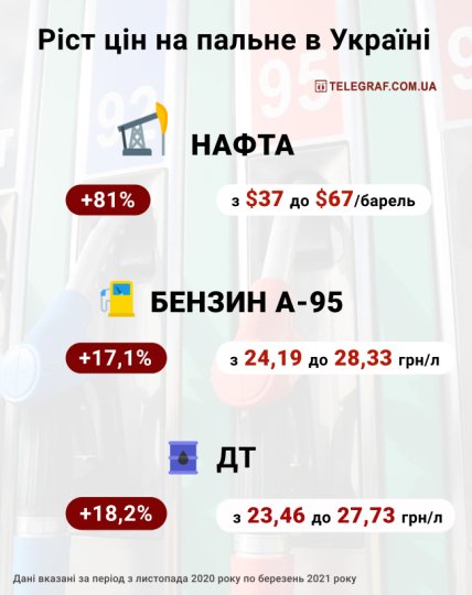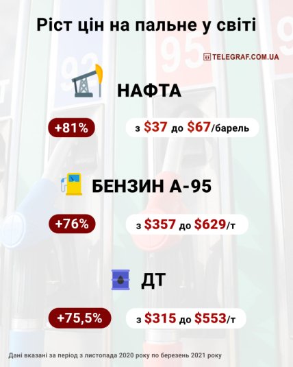 "В Україні цінова пружина стискалася три місяці через знижене споживання і високий рівень постачання палива під час січневих свят, локдаун і подальші погодні умови. Тепер ця пружина швидко розпрямляється в міру відновлення запасів і зростання цін на нафту", – каже директор Консалтингової групи "А-95" Сергій Куюн.