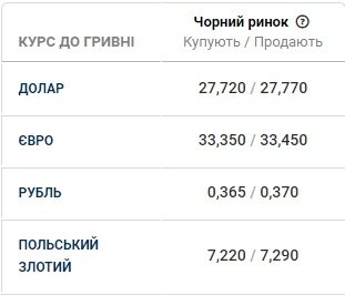 Тим часом, обмінний курс на чорному ринку на 29 квітня виглядає наступним чином: