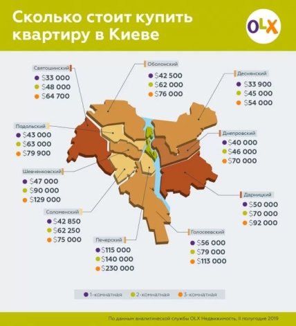 Найбільш дешеві однушки в Святошинському районі, їх можна купити в середньому за $33 000.