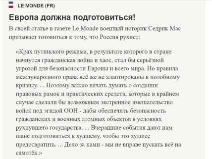 Моніторинг приніс публікацію у Le Monde, яка повністю пояснює мотивацію та поведінку західних еліт.