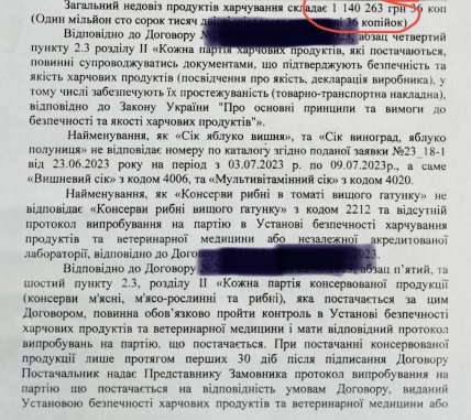 Крім цього, під час прийому товару встановлено, що мʼясні, мʼясо-рибні та рибні консерви окремих постачальників взагалі не пройшли відповідної перевірки в лабораторіях Міноборони, що є грубим порушенням договору в частині безпечності харчових продуктів.
