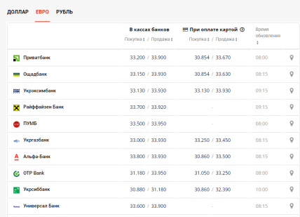 Євро упродовж доби модна купити за 35,70 гривні, продають – за 36,10 гривень.