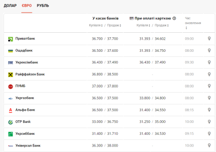 Європейська валюта на чорному ринку також позиції утримала в порівнянні з попереднім днем. Купити євро у суботу можна буде за 37,15 гривень, що аж на 25 копійок дешевше, аніж учора. Водночас продаж обійдеться у 37,50 гривень. І це на 10 копійок менше, в порівнянні з попередніми розцінками.