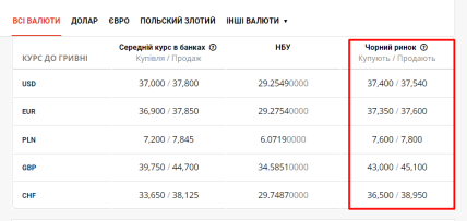 При цьому європейська валюта на чорному ринку під час купівлі у ціні зросла. Купівля одного євро сьогодні обійдеться у 37,35 гривень, а от продаж вартуватиме 37,60 гривень.