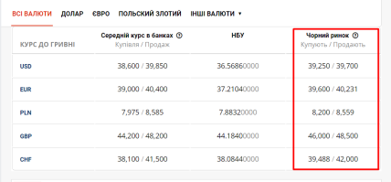 Що стосується європейської валюти, то "чорний" євро упродовж сьогоднішньої доби коштуватиме 39,60 гривень, під час продажу — 40,23 гривні.
