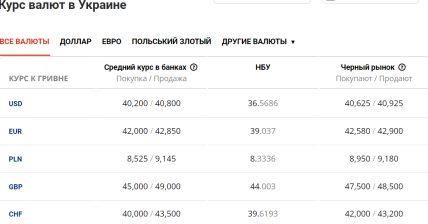 За даними сайту "Мінфін", сьогодні, 2 січня, середній курс в українських банках становить 40,20 грн (купівля) та 40,80 (продаж). Курс НБУ — 36,56. На чорному ринку американський долар купують по 40,62 грн, а продають по 40,92 грн.
