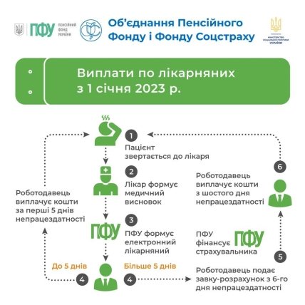 З 1 січня 2023 року виплату лікарняних здійснює Пенсійний фонд України замість Фонду соціального страхування. Процедура нарахування виплат залишилася незмінною, але скоротився час їх надходження роботодавцю.