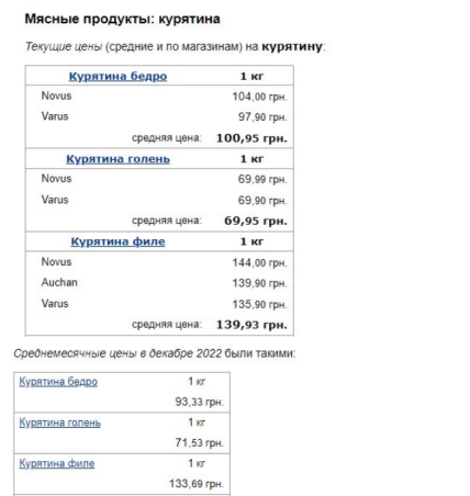 Що стосується філе та стегон, то вони навпаки подорожчали: із 133,69 гривні за кіло до 139,93 гривні і з 93,33 гривні до 100,95 гривні відповідно.
