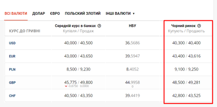 - долар — від 20 копійок до 1 гривні (коридор купівлі та продажу від 40,00 до 41,00 гривень),