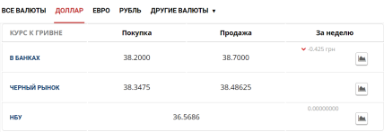 Зазначимо, що за даними порталу "Мінфін", сьогодні, 10 березня, середній курс долара в українських банках становить 38,20 грн (купівля) та 38,70 (продаж). На чорному ринку "зелений" купують по 38,34 грн, а продають по 39,48 грн. Водночас офіційний курс Національного банку України — 36,56.
