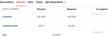 Зазначимо, що за даними порталу Мінфін, сьогодні, 27 березня, середній курс долара в українських банках становить 38,10 грн (купівля) та 38,55 (продаж). На чорному ринку "зелений" купують по 38,25 грн, а продають по 39,38 грн. Водночас офіційний курс Національного банку України — 36,56.