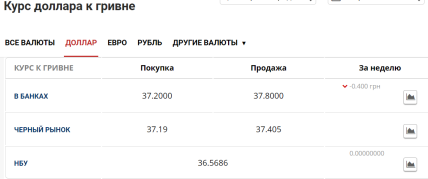 Зазначимо, що за даними порталу Мінфін, сьогодні, 4 квітня, середній курс долара в українських банках становить 37,20 грн (купівля) і 37,80 (продаж). На чорному ринку "зелений" купують по 37,19 грн, а продають по 37,40 грн. Водночас офіційний курс Національного банку України — 36,56.