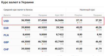 Зазначимо, що за даними порталу "Мінфін", сьогодні, 5 червня, середній курс долара в українських банках становить 36,95 грн (купівля) та 37,45 (продаж). Готівковий курс — 37,10 (купівля) та 37,20 (продаж). Водночас офіційний курс Національного банку України — 36,56.