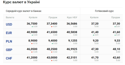За даними порталу "Мінфін", у вівторок, 25 липня, середній курс долара в українських банках становить 36,75 грн (купівля) та 37,34 (продаж). Готівковий курс — 37,20 (купівля) та 37,30 (продаж). Водночас офіційний курс Національного банку України залишається незмінним — 36,56 грн.