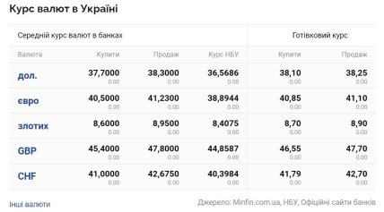 За даними Мінфін, у четвер, 21 вересня, середній курс долара в українських банках становить 37,70 грн (купівля) і 38,30 (продаж). Готівковий курс — 38,10 (купівля) та 38,25 (продаж). Водночас офіційний курс Національного банку України — 36,56.