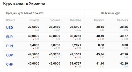 За даними порталу "Мінфін", у середу, 4 жовтня, середній курс долара в українських банках становить 37,60 грн (купівля) та 38,34 (продаж). Готівковий курс — 38,15 (купівля) та 38,35 (продаж). Водночас офіційний курс Національного банку України змінився — 36,59 грн.