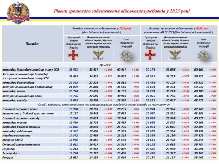 Згідно з графікою, мінімальну виплату у 2023 році отримують стрільці, які не виконують бойових завдань — 20 587 гривень. А якщо вони виконують завдання, то їх виплата збільшується до 50 587 гривень. Стрільці, які є учасниками бойових дій чекатимуть на 120 587 гривень.