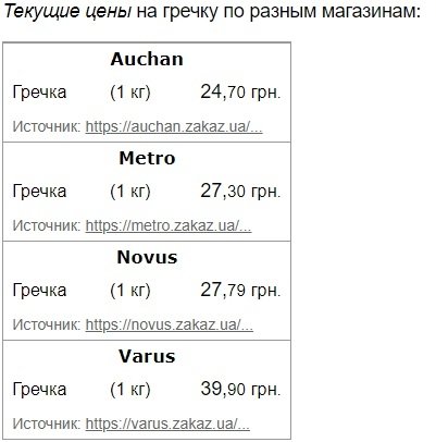 Так, гречка з 2 листопада до 2 грудня подешевшала в середньому на 4,3 гривні. Кілограм цієї крупи коштує 29,92 гривень у середньому, а у супермаркетах ціни варіюються від 24 грн/кг до 39 грн/кг.