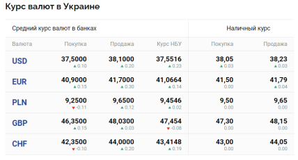За даними порталу "Мінфін", у четвер, 21 грудня, середній курс долара в українських банках становить 37,50 грн (купівля) та 38,10 (продаж). Готівковий курс — 38,05(купівля) та 38,23 (продаж). Водночас офіційний курс Національного банку України — 37,55.