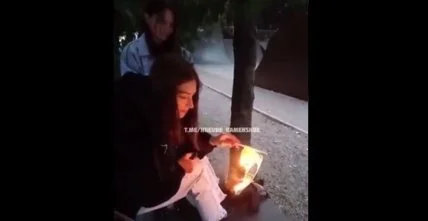 "Обдовбана дура на камеру спалює український прапор, хихикає і іронізує, що це "не її прапор". І не боїться", — написав користувач твіттеру Ілля Айзін.