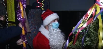 У Дніпрі з'явилася новорічна маршрутка: у салоні все прикрашене дощиком та гірляндами, а водій, поруч з яким стоїть справжня жива ялинка, одягнутий у костюм Діда Мороза.