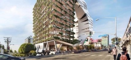 Архітектурна фірма Morphosis розробила в Лос-Анджелесі 15-поверховий будинок. Проєкт передбачає наявність кутової білої конструкції, яка "обнімає" скляну вежу, покриту рослинами.