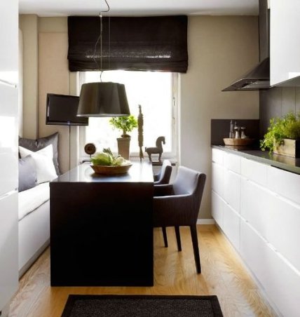 Чорний колір не завжди зжимає простір. При поєднанні зі світлими тонами, його можна використовувати у приміщенні скромних розмірів. Це стосується не тільки віталень та спалень.